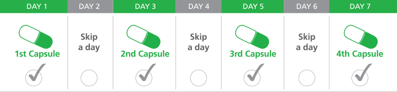 1 capsule taken on Days 1, 3, 5 and 7 may provide up to 7 years of protection against typhoid fever. Complete vaccination is comprised of the ingestion of four capsules. Optimal immune response may not be achieved unless the entire vaccination schedule is completed.